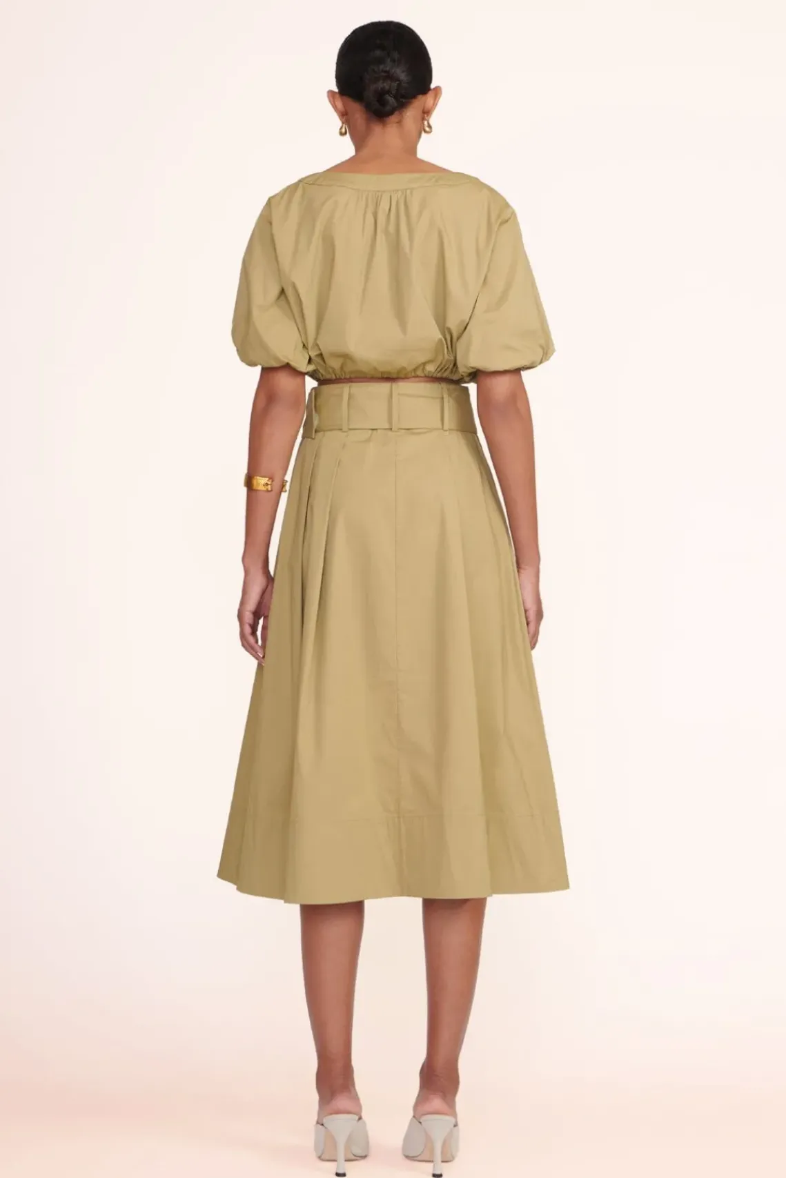 Made out of stretchy cotton poplin, the Ellington is a cropped button down top with balloon sleeves and adjustable tie hem. Pair this style back to the Kingsley Skirt for a coordinated set.