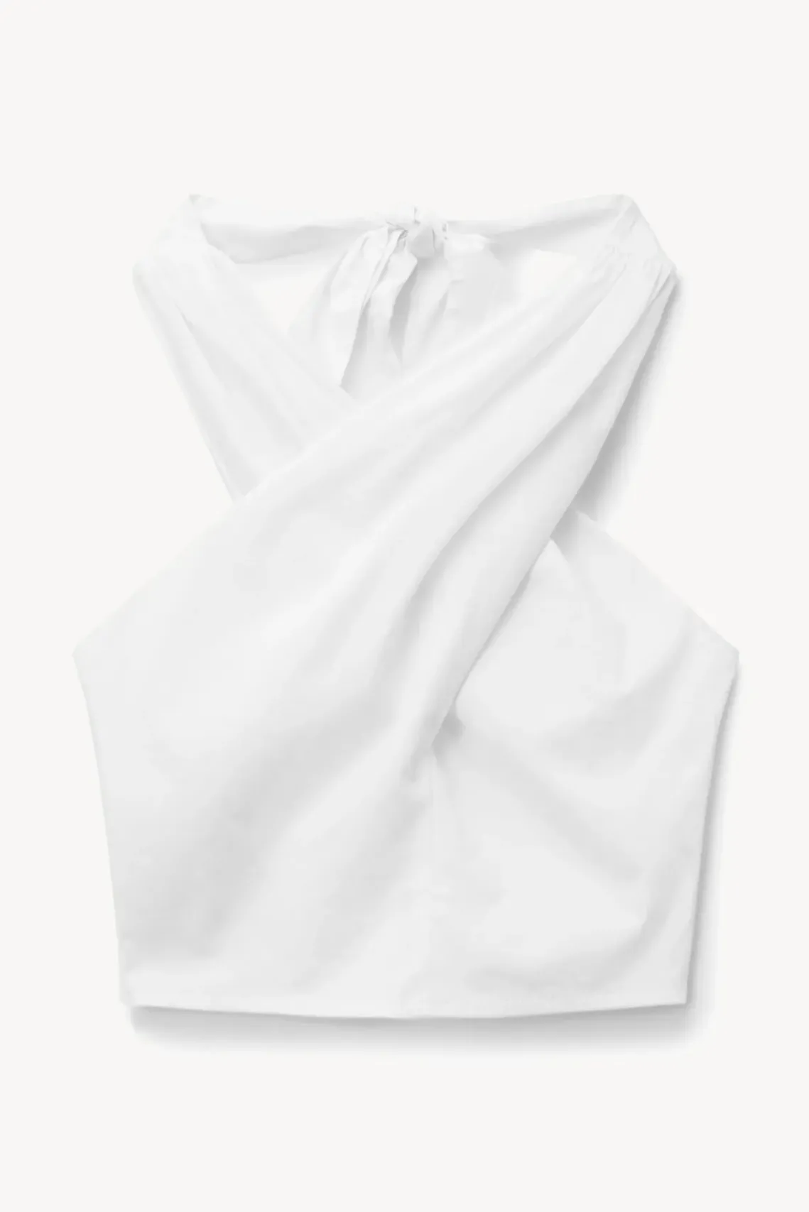 The Kai Top is a cropped fitted halter top made out of cotton poplin. This style features a hidden zipper closure at the side.