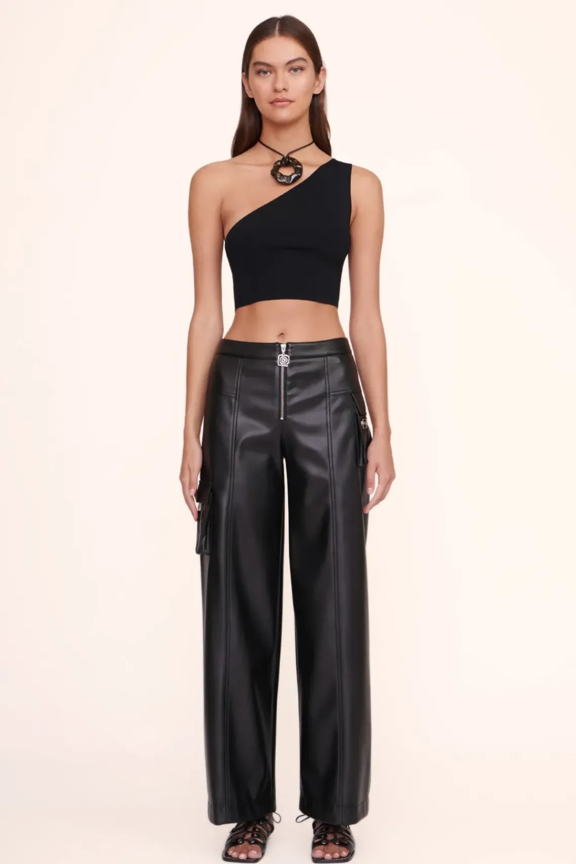 The Lexi is a one shoulder cropped top constructed out of a compact knit fabric.