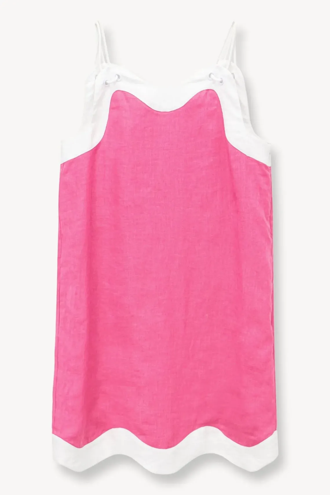 A sleeveless linen trapeze dress, the Renata Dress features contrast wiggle detail and natural rope straps.