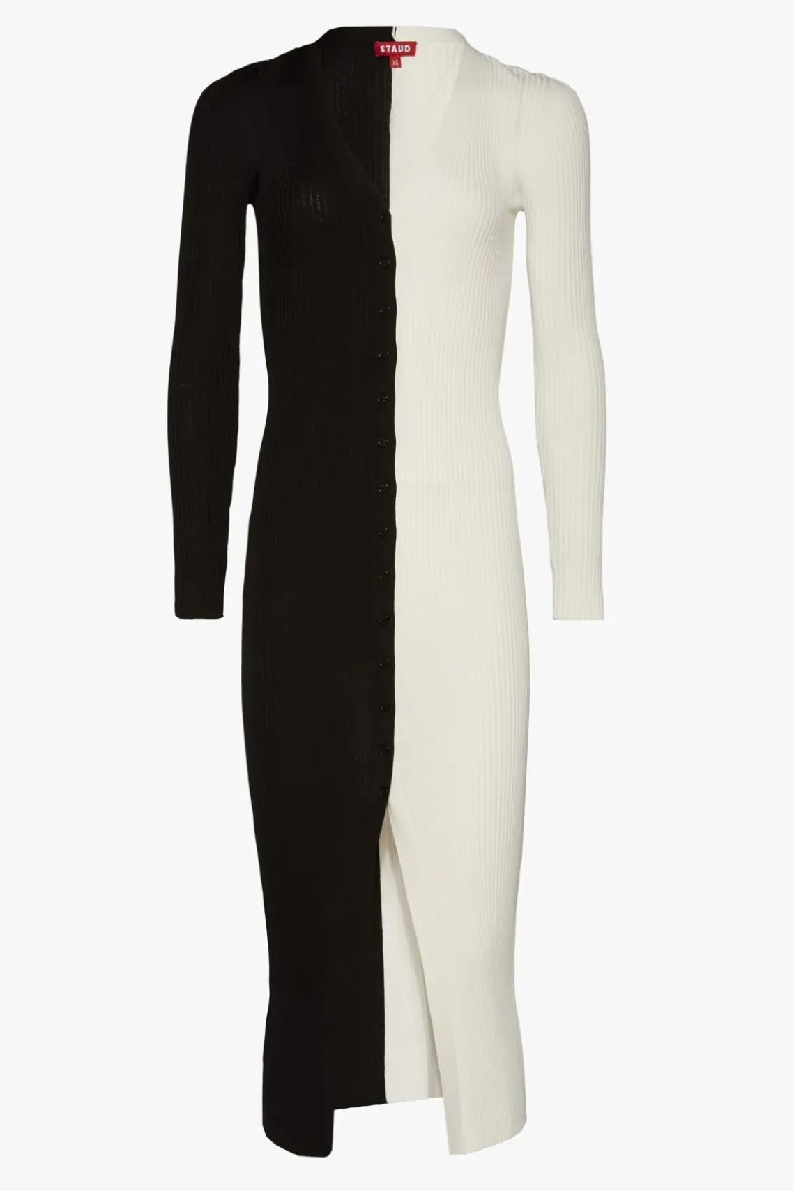 Our signature style, the Shoko Sweater, can be worn as a cardigan or dress. This two-tone style is made out of stretchy, comfortable compact rib knit fabric.