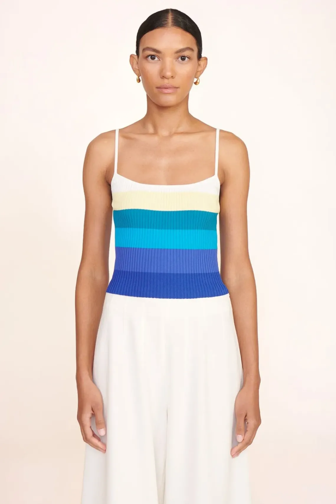 A rib knit cami tank, the Soleil can be paired as a twin set with the matching Cargo Sweater.