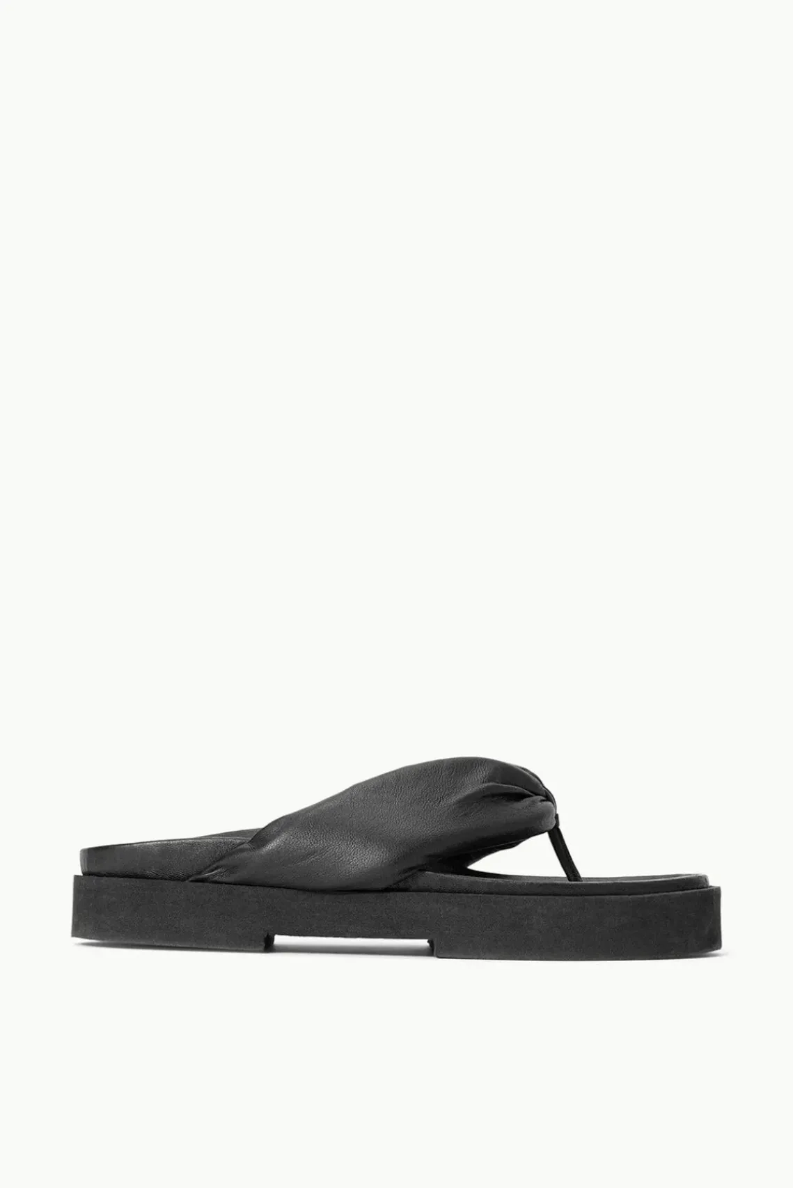 A chunky platform sandal with puff fill upper, the Dahlia features a thong toe construction and is made out of a soft nappa leather.