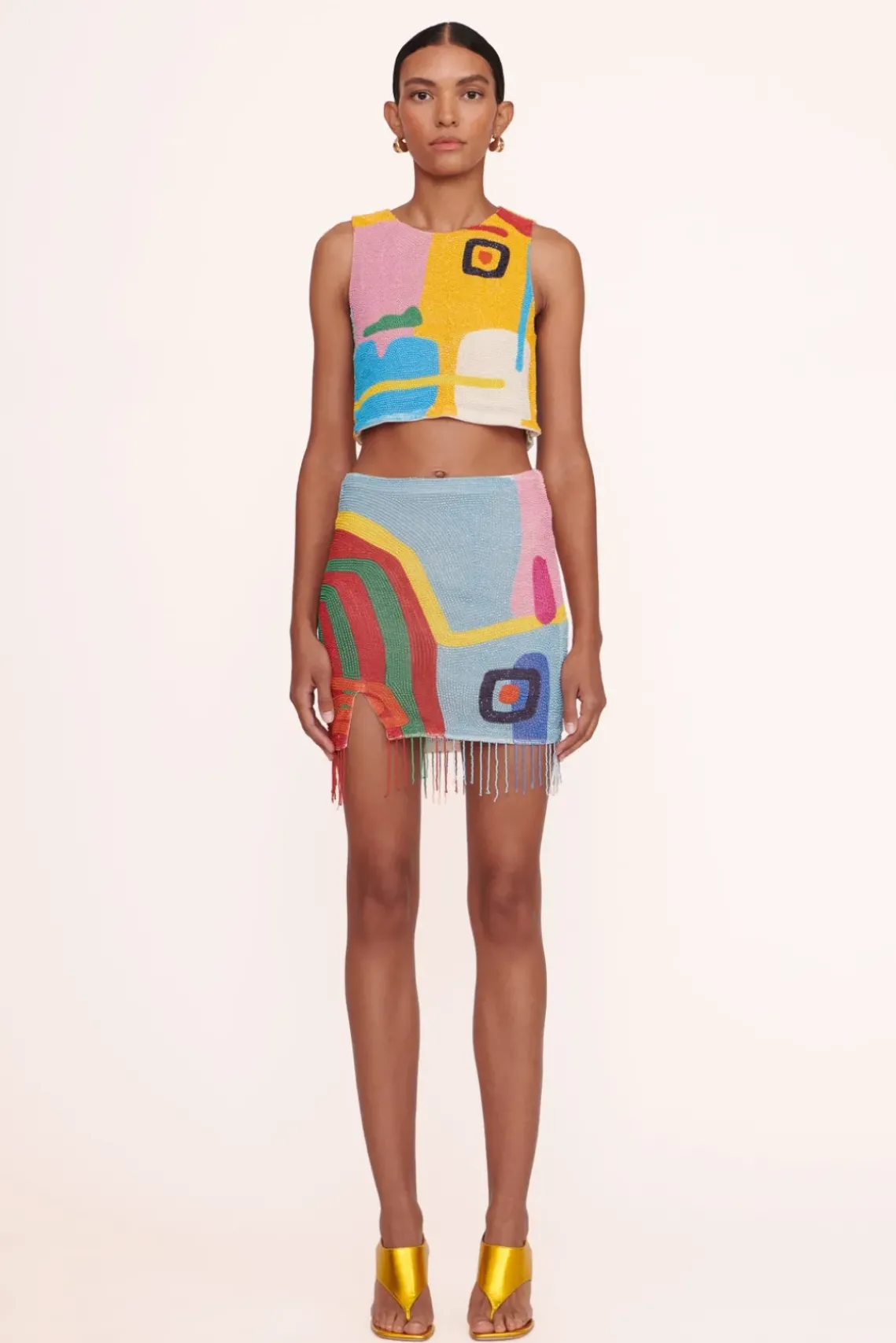 An all over beaded cropped tank, the Alora Top in Daffodil Dream features an abstract print. Pair back to the Emerie Skirt for a coordinated look.