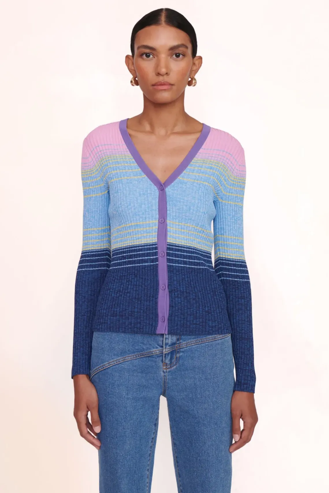 Our best-selling cardigan can be easily layered or worn as a top on its own. Made out of stretchy, comfortable compact rib knit fabric.