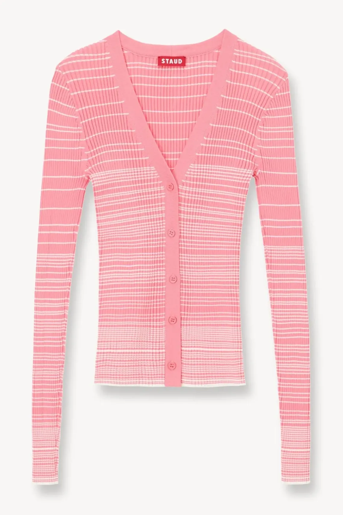 Our best-selling cardigan in a new ombre stripe pattern. The Cargo Sweater can be easily layered or worn as a top on its own. This style is constructed out of a stretchy rib knit fabric.