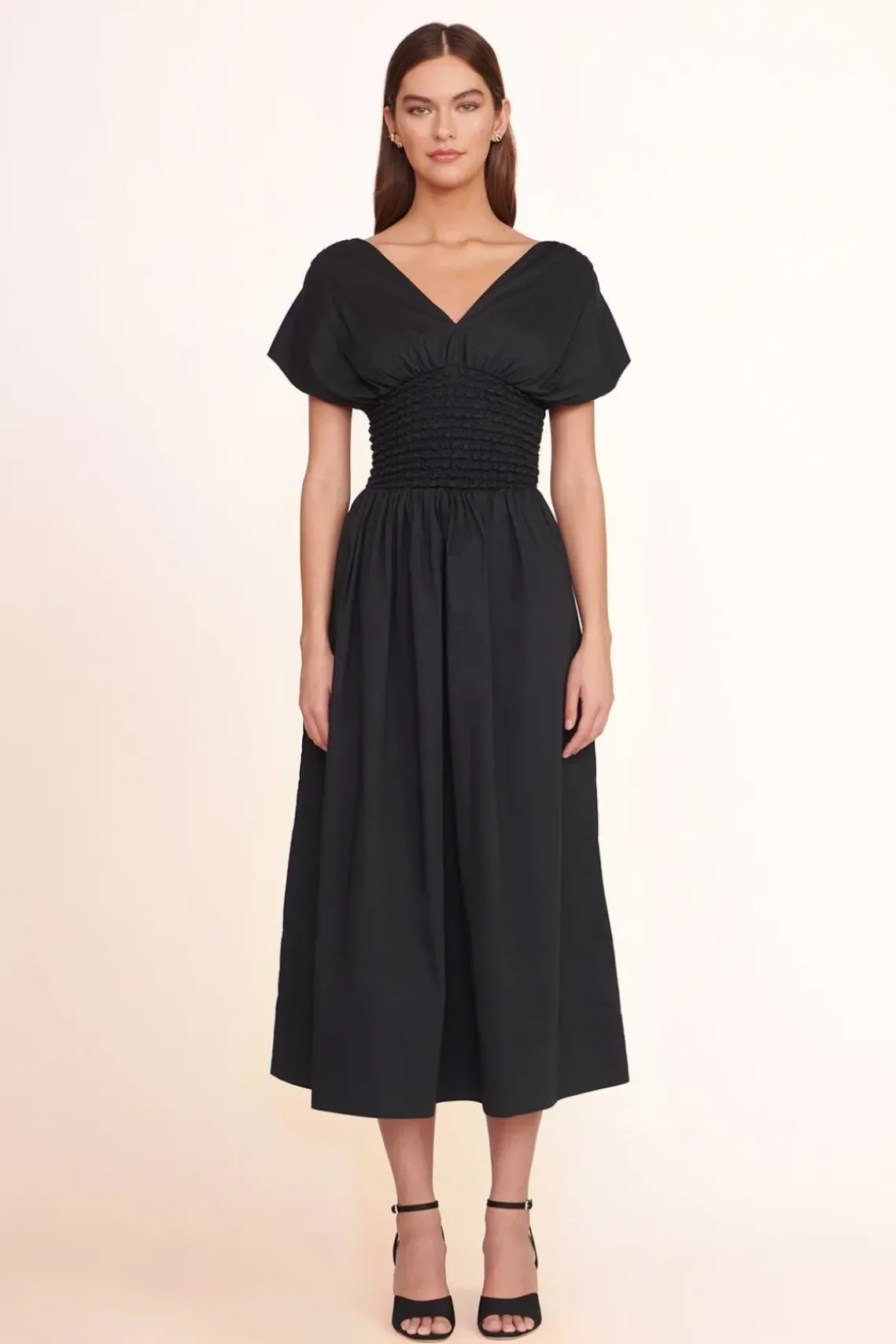 A midi-length dress with cap sleeves, the Jackson Dress features a fully smocked waist panel and is constructed out of cotton poplin.