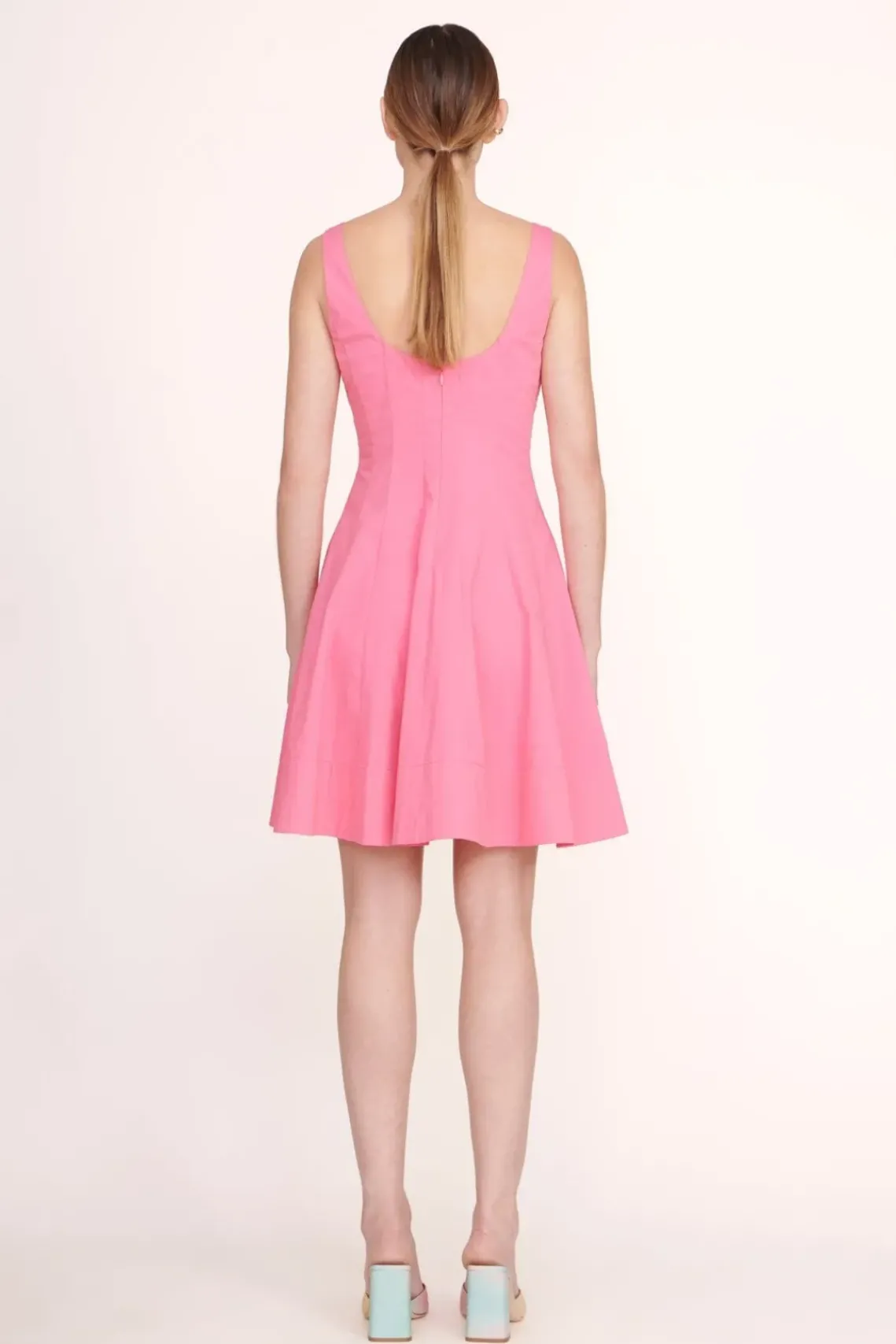 Our classic Wells Dress in a mini update. The Mini Wells Dress features a corset-style panel construction to create a flattering, fitted shape through the waist and a mini-length a-line skirt. Made out of lightweight cotton poplin.