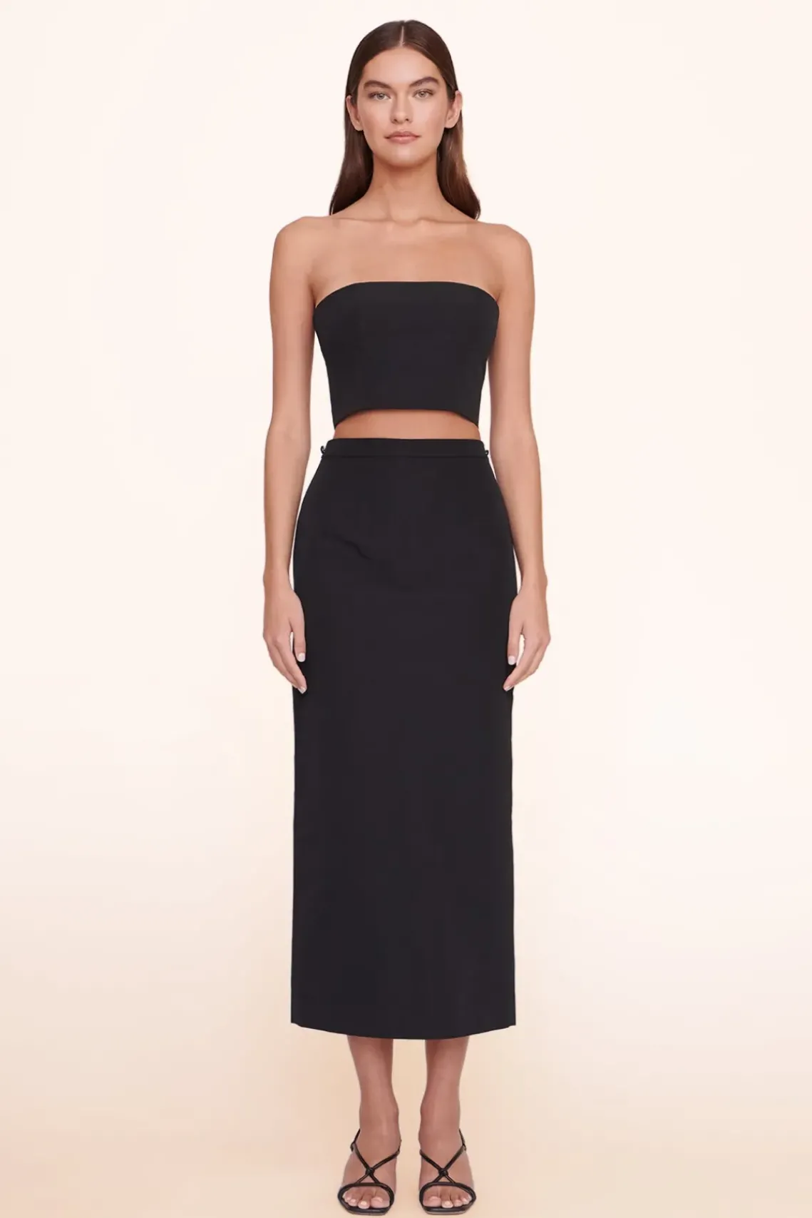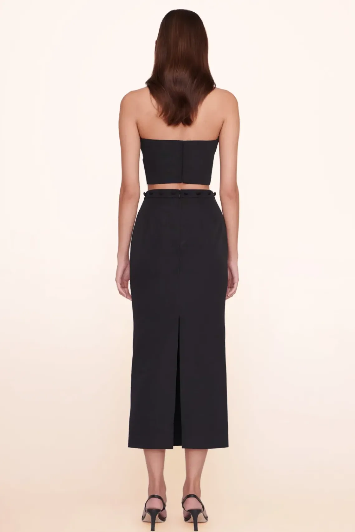 The Nyla Top is a grosgrain cropped tube top with a hook eye closure in the back.