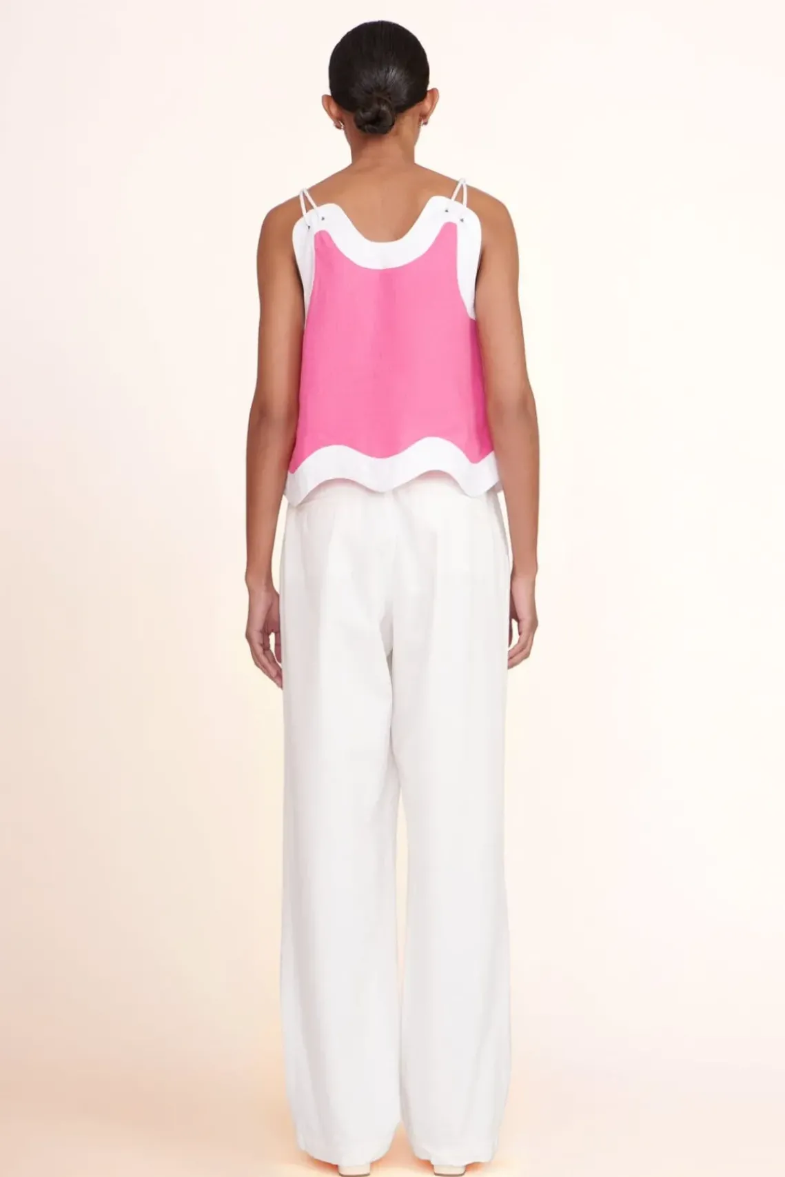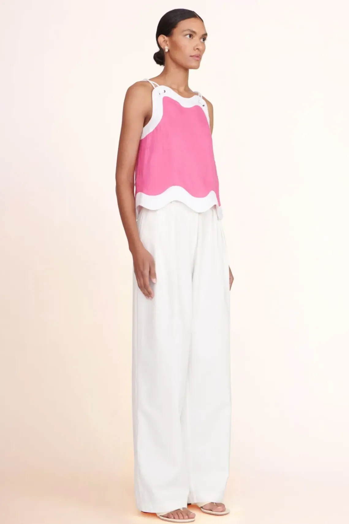 A sleeveless linen trapeze top, the Renata Top features contrast wiggle detail and natural rope straps.