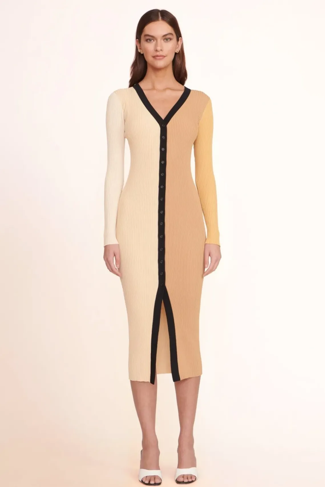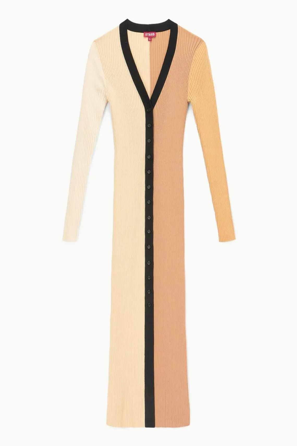 Our signature style, the Shoko Sweater, can be worn as a cardigan or dress. This multi-color style is made out of a stretchy, comfortable compact rib knit fabric.