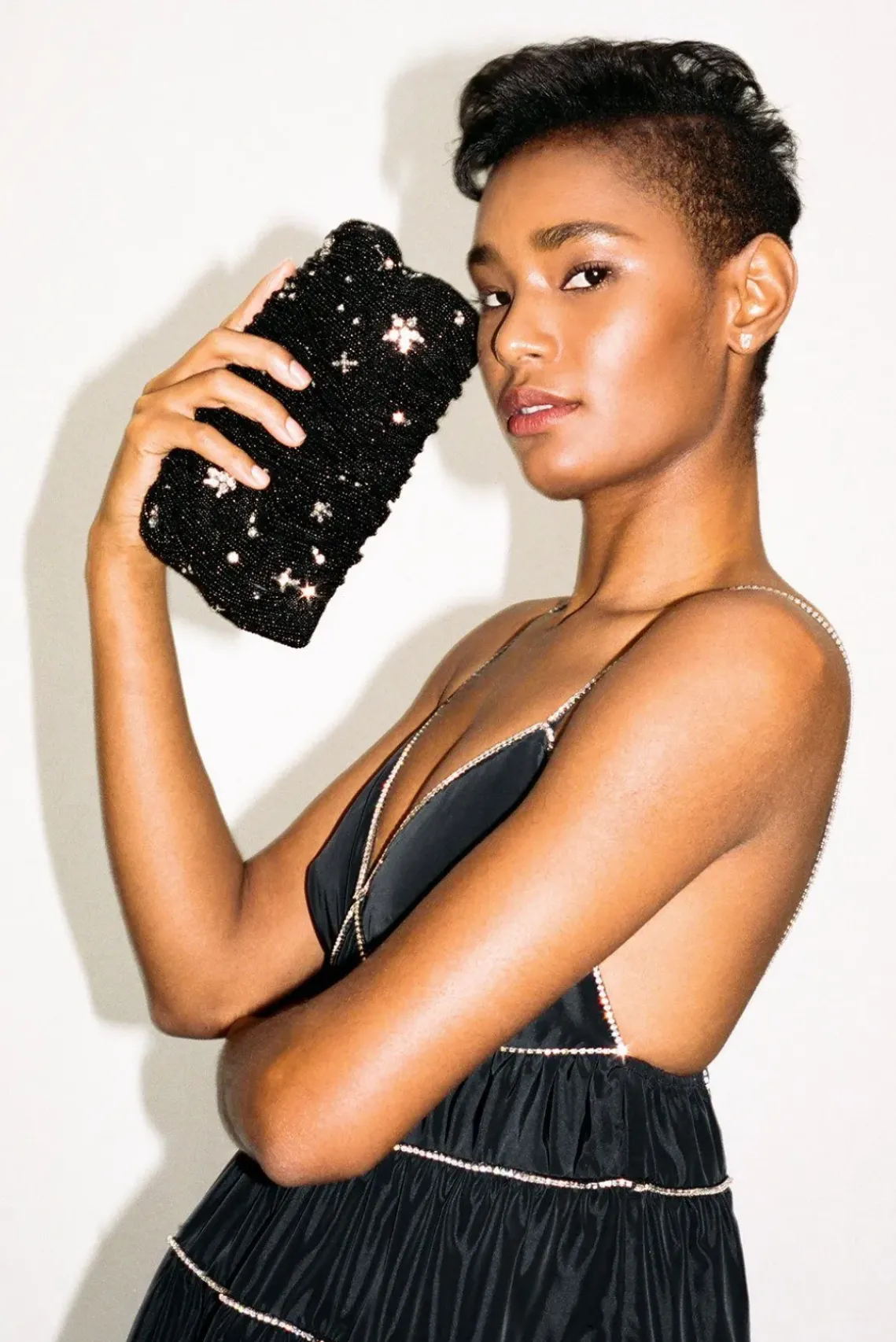 A hand-beaded update to our signature bag. The Beaded Bean is the perfect evening bag, in a rhinestone constellation pattern. This style features a rhinestone crescent moon on the back.