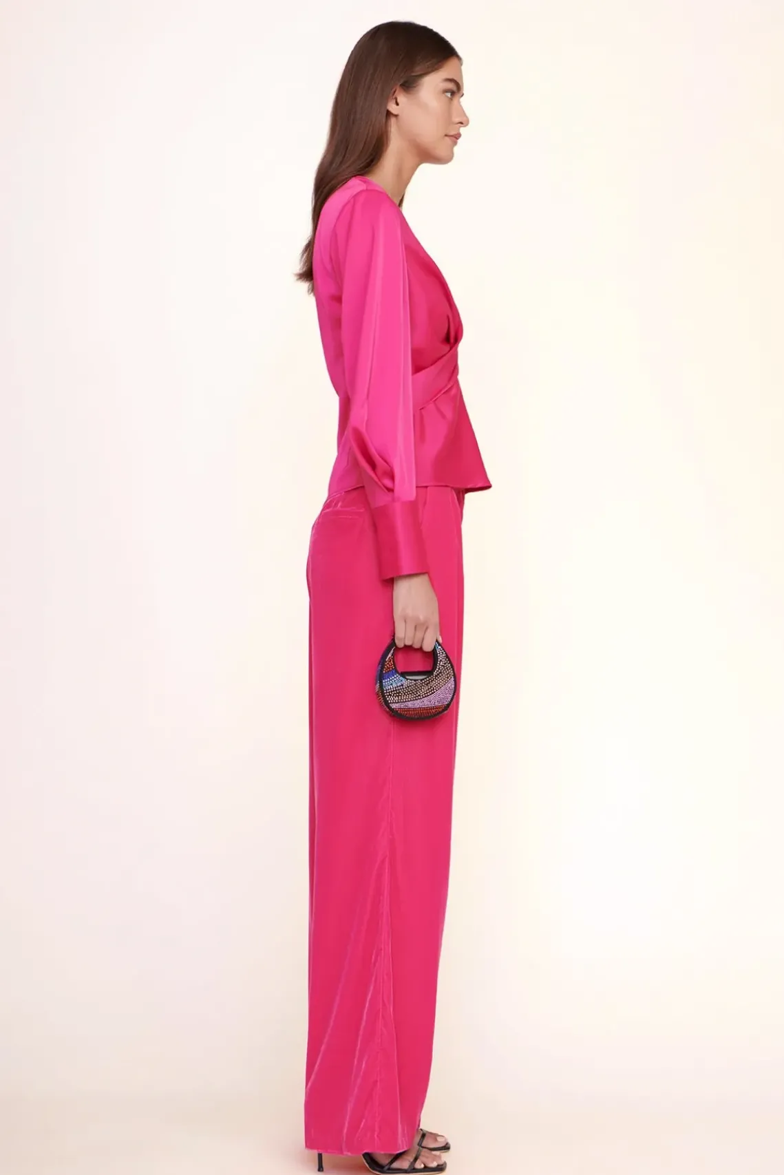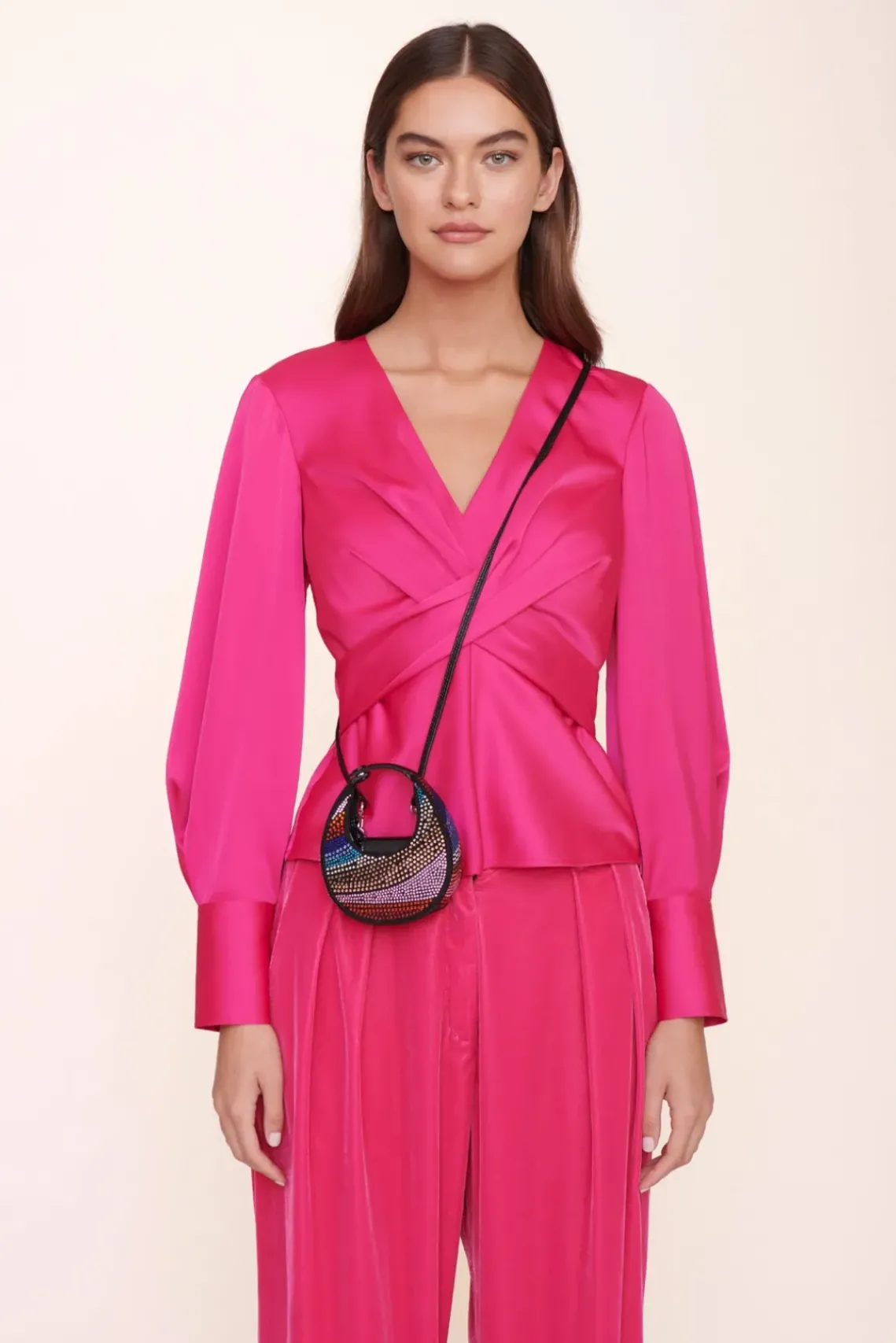 Introducing the smallest addition to the Moon family, the Micro Moon is a crystal rhinestone leather bag featuring a magnetic closure, a button snap detail at the handle and a removable crossbody strap.