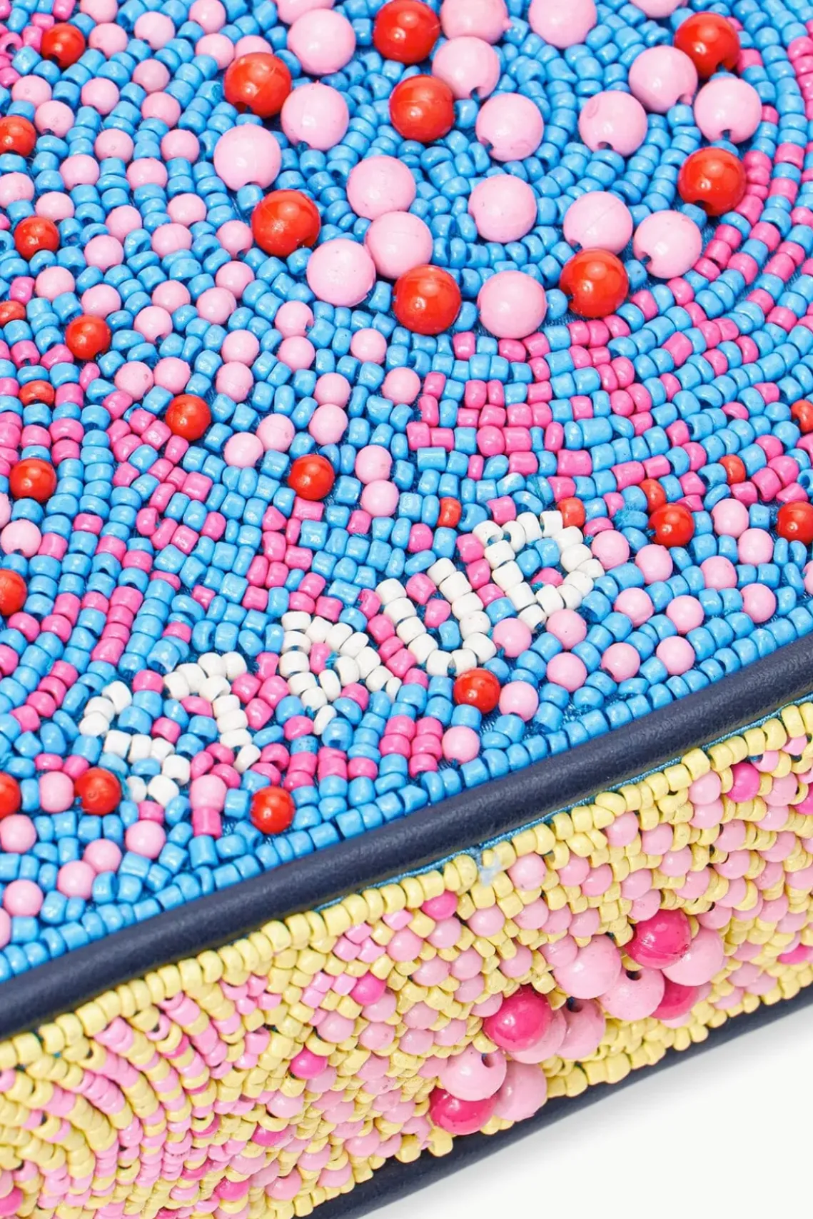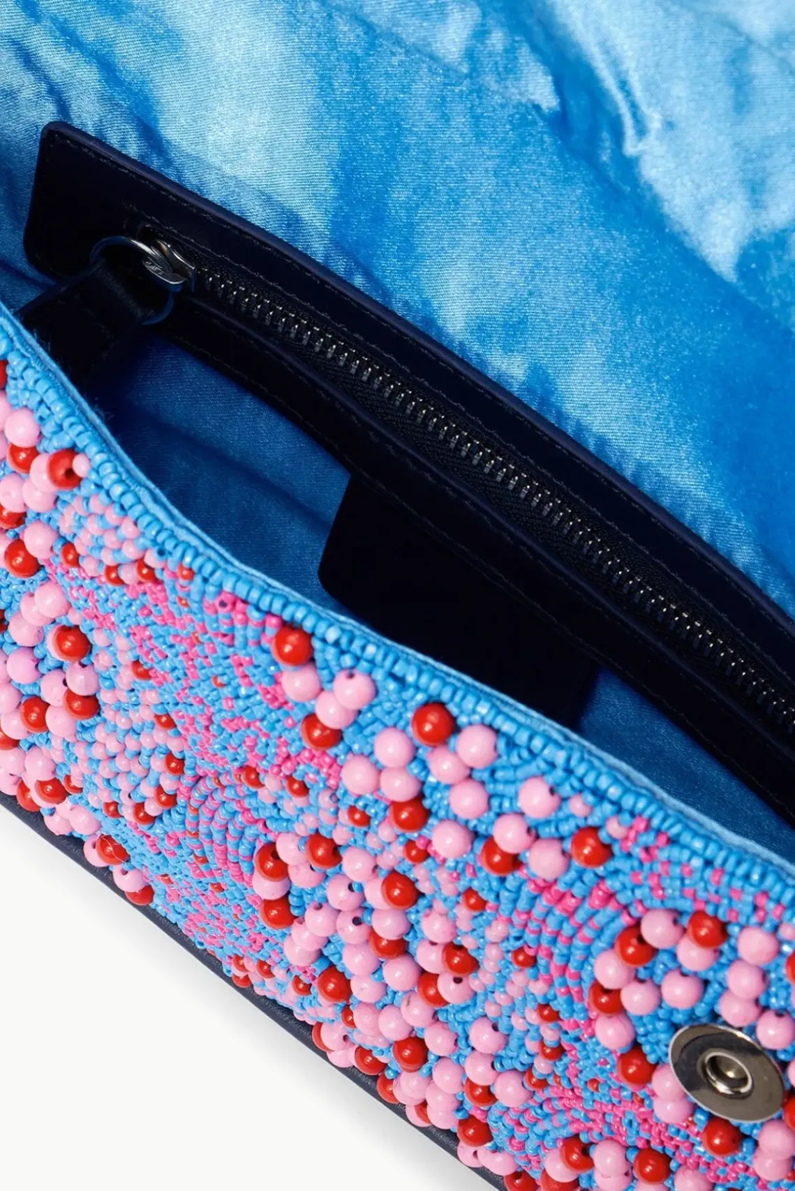 The classic hand-beaded shoulder bag with vegan leather piping. This Tommy update features tonal swirl patterns and magnetic snap closure.