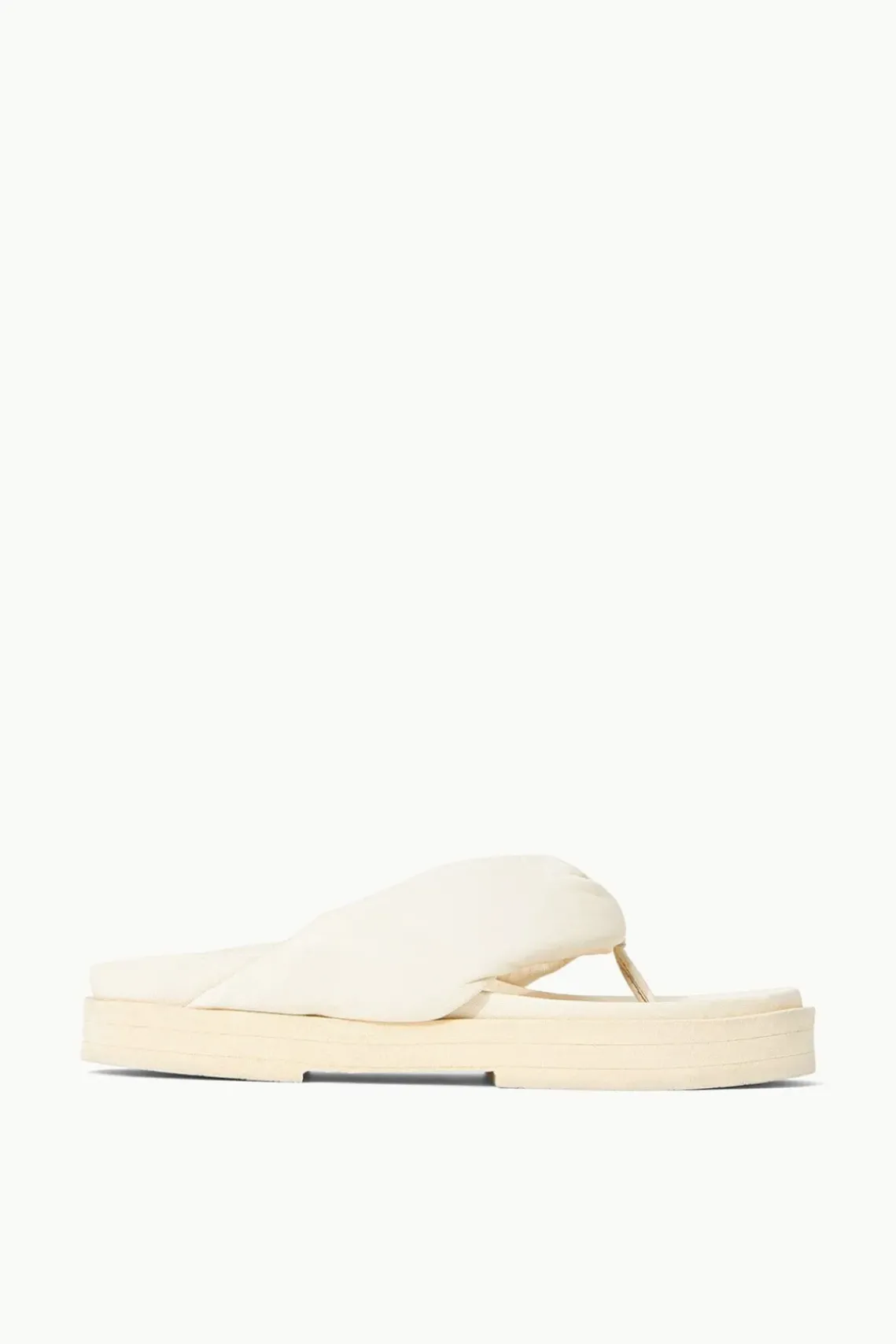 A chunky platform sandal with puff fill upper, the Dahlia features a thong toe construction and is made out of a soft nappa leather.