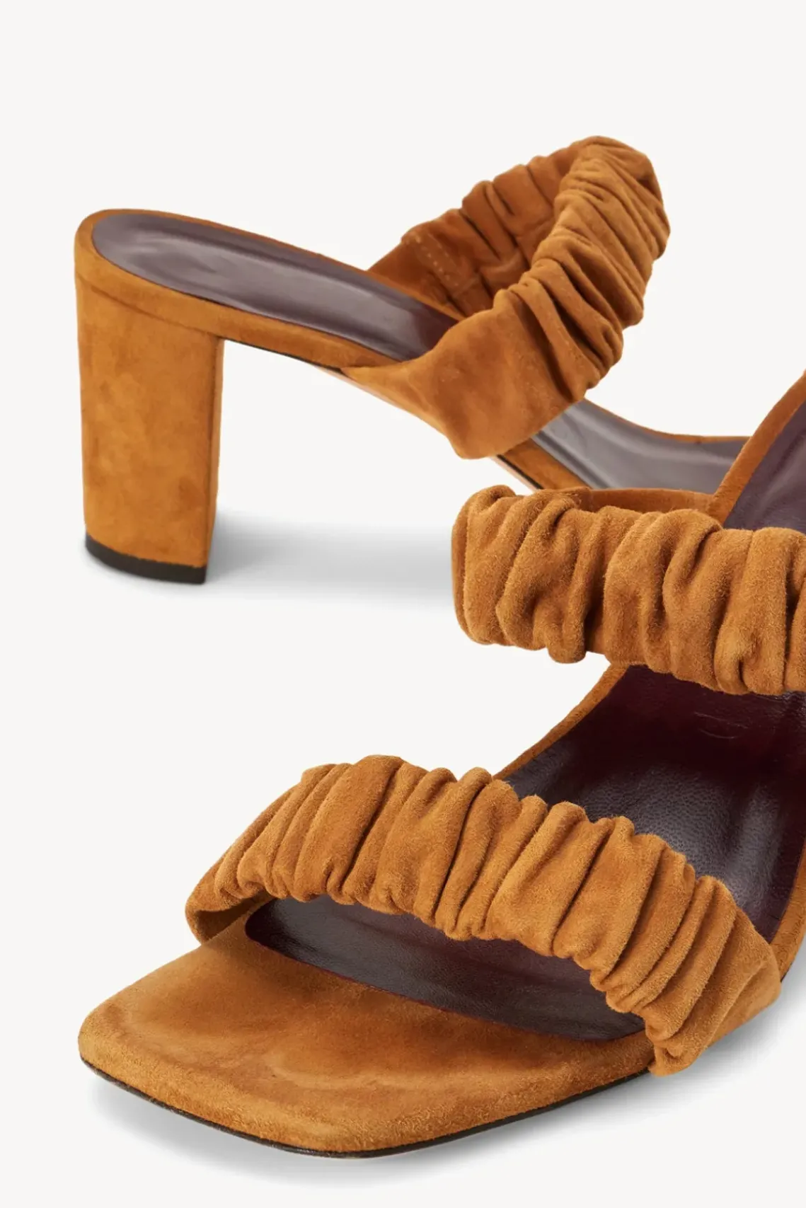 SHOES STAUD – FRANKIE RUCHED SANDAL CASHEW SUEDE