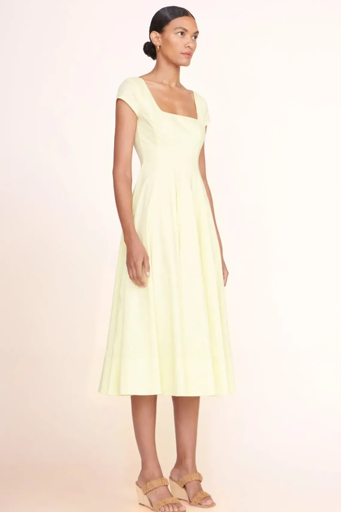 A raffia update to our signature heel, the Frankie Wedge features a square toe and two ruched suede straps.