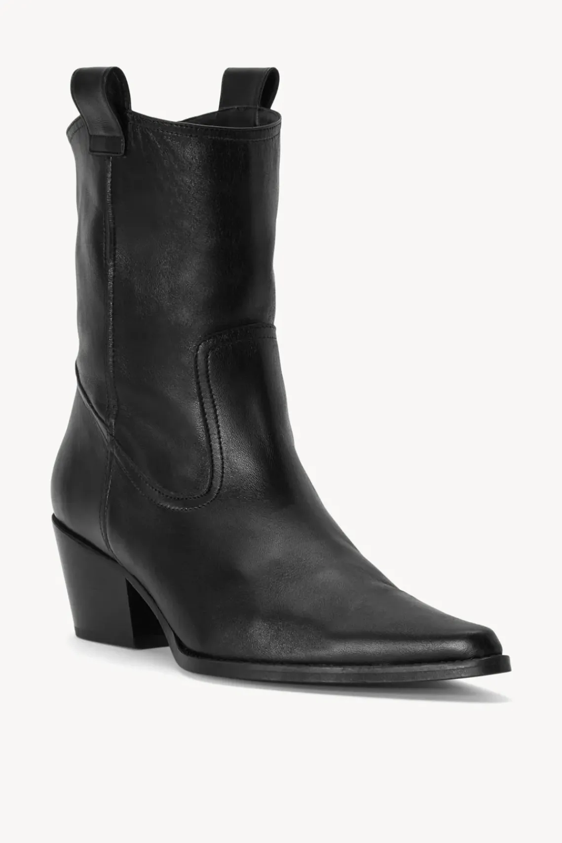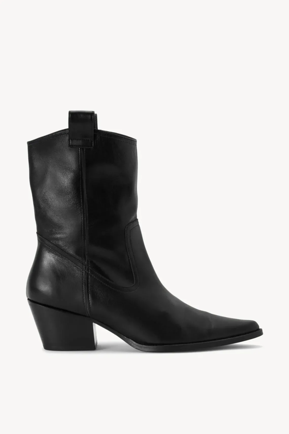New for the season, the June is a true pointed toe cowboy boot made from soft leather. This style features western seaming and cuban heel. Style runs narrow, consider sizing up if in between sizes.