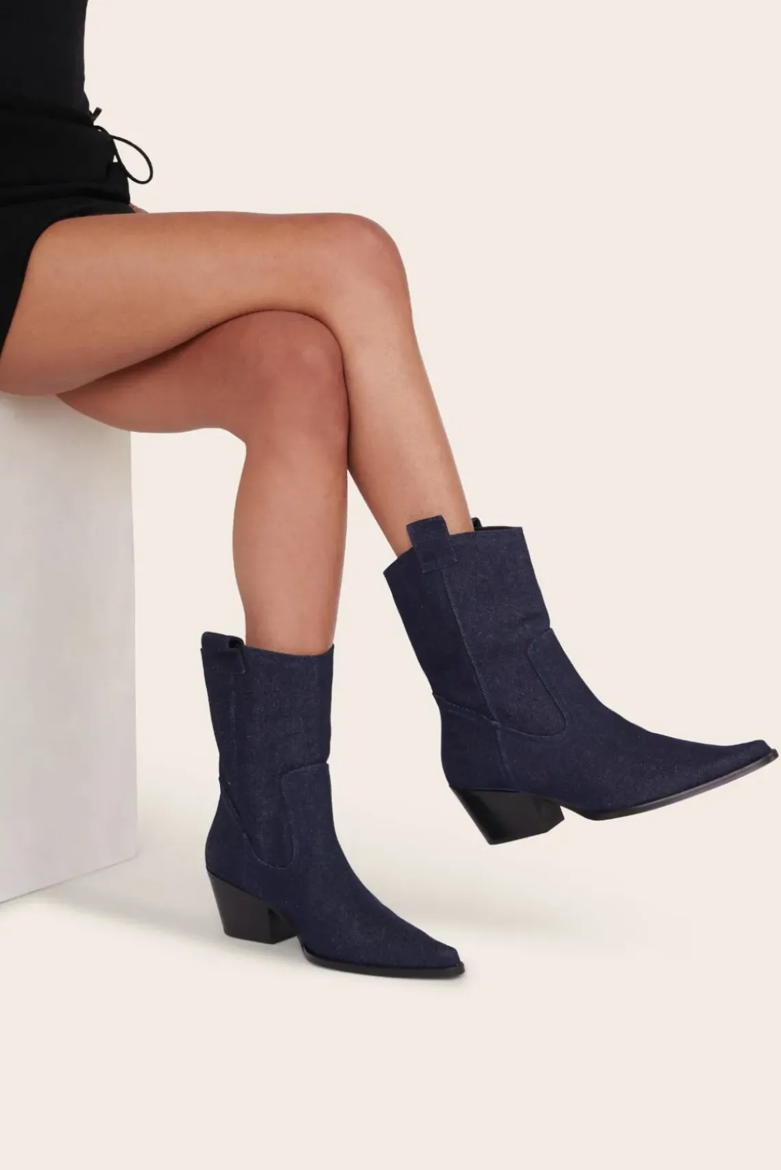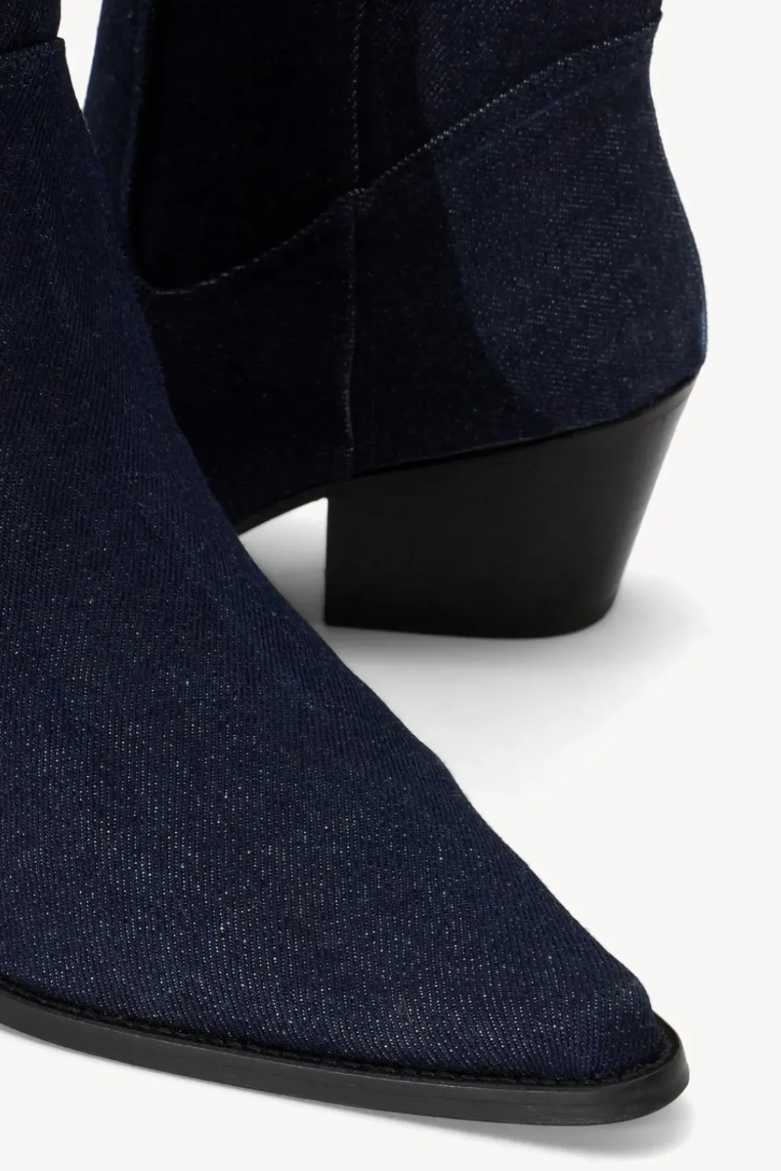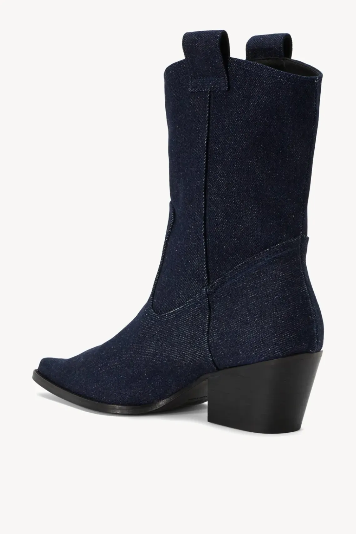 New for the season, the June is a true pointed toe cowboy boot made from denim. This style features western seaming and cuban heel. Style runs narrow, consider sizing up if in between sizes.