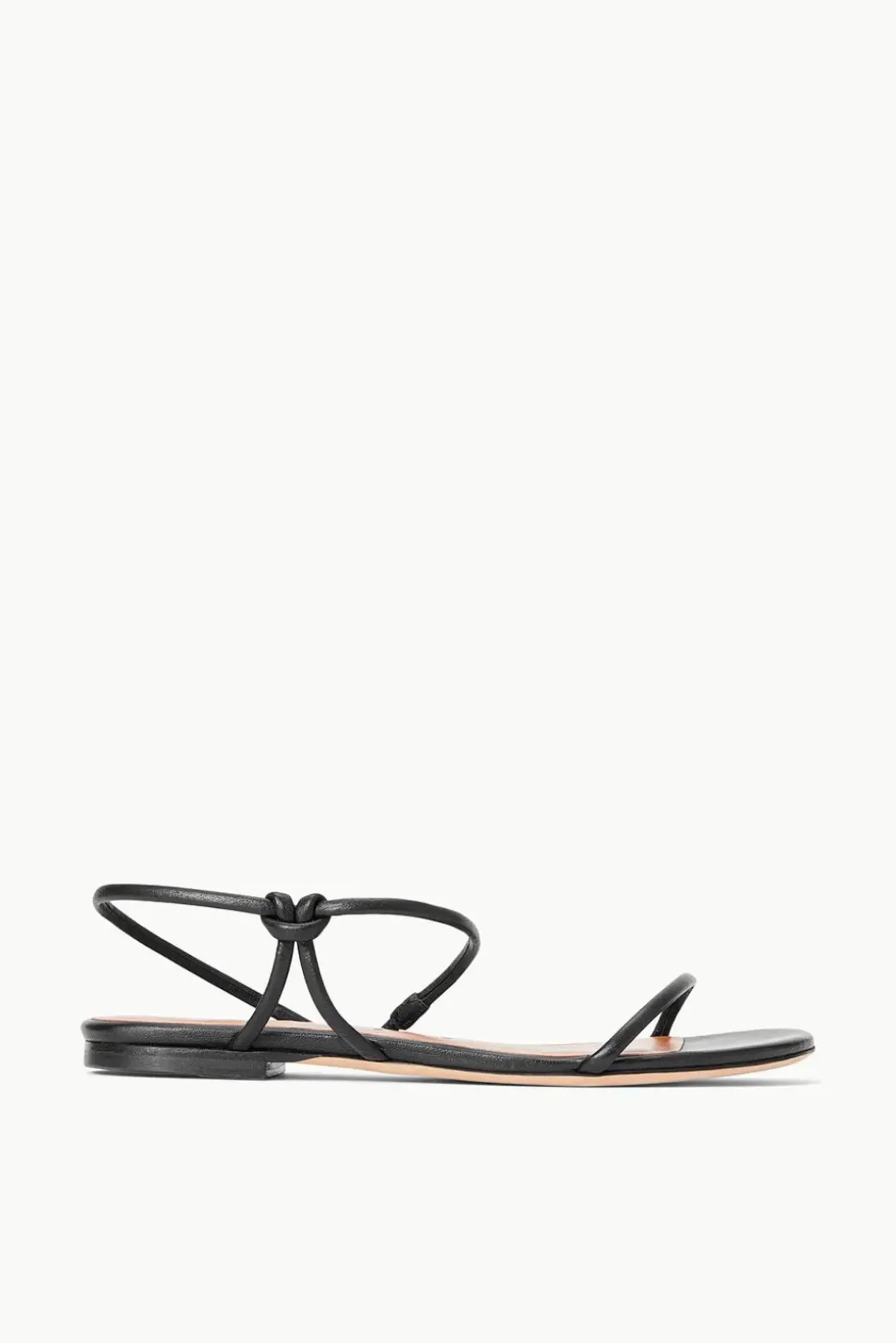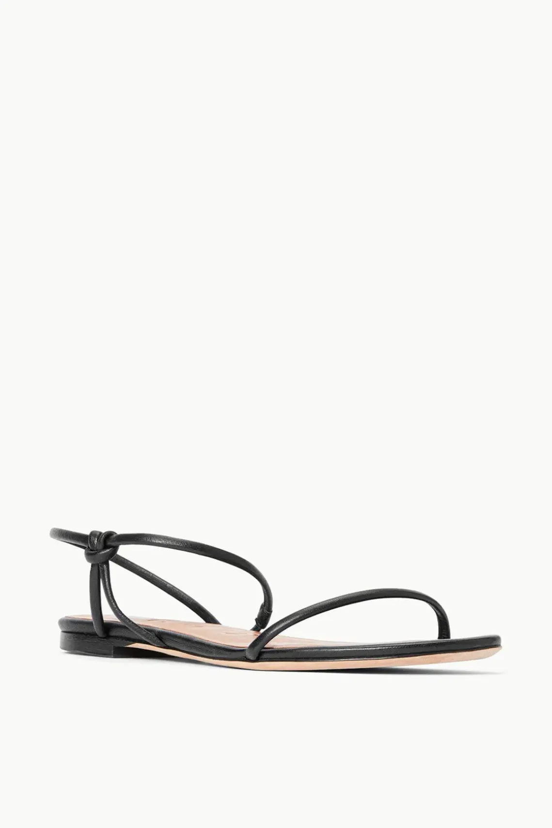 A flat sandal with tubular straps, the Laurel Sandal features a leather cord toe and ankle strap.