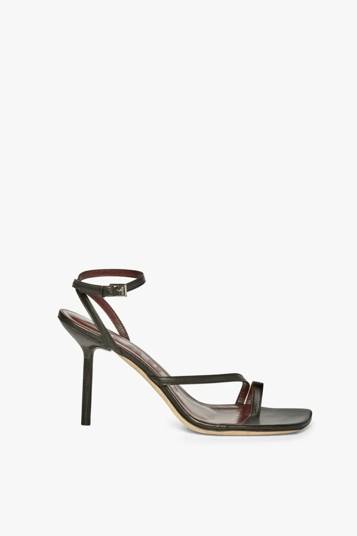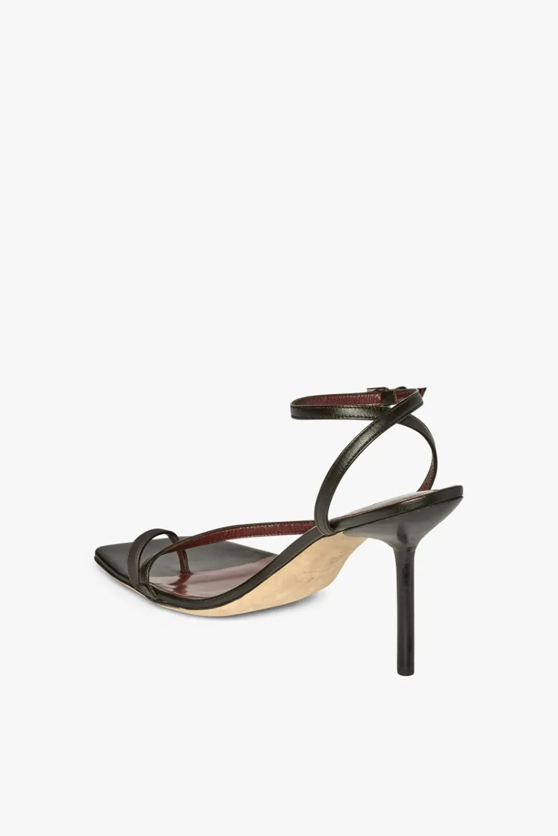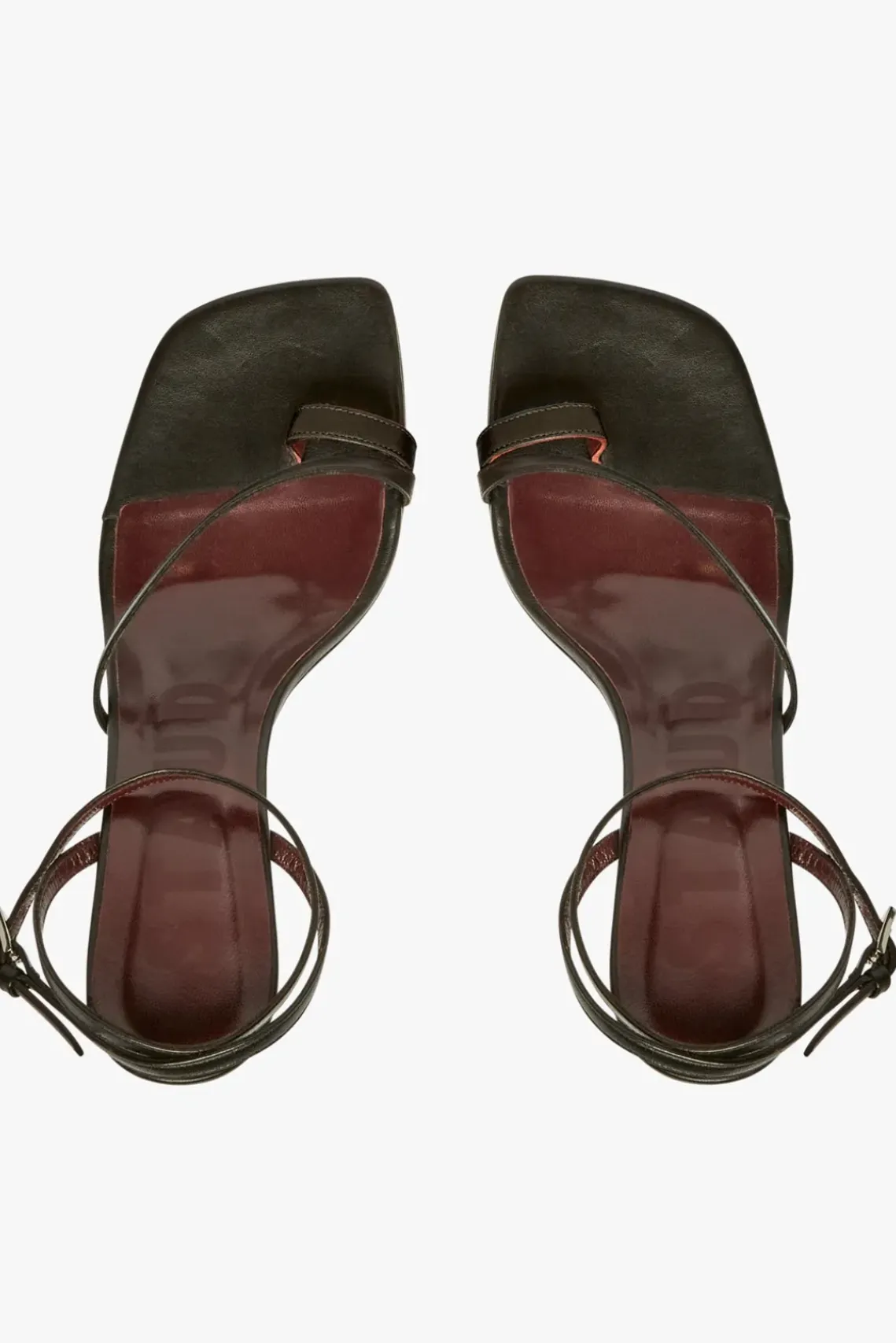 A minimalistic leather heel, the Mona features slender straps and a toe ring.