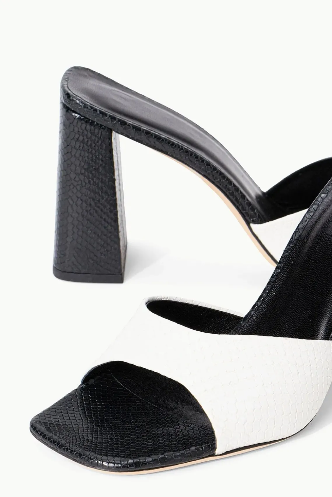 SHOES STAUD – SLOANE HEEL SNAKE EMBOSSED BLACK WHITE